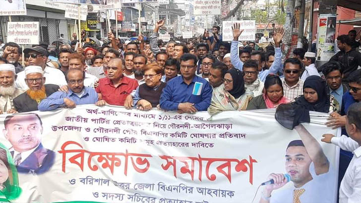 বরিশালের গৌরনদীতে বিএনপি নেতার বিরুদ্ধে বিক্ষোভ