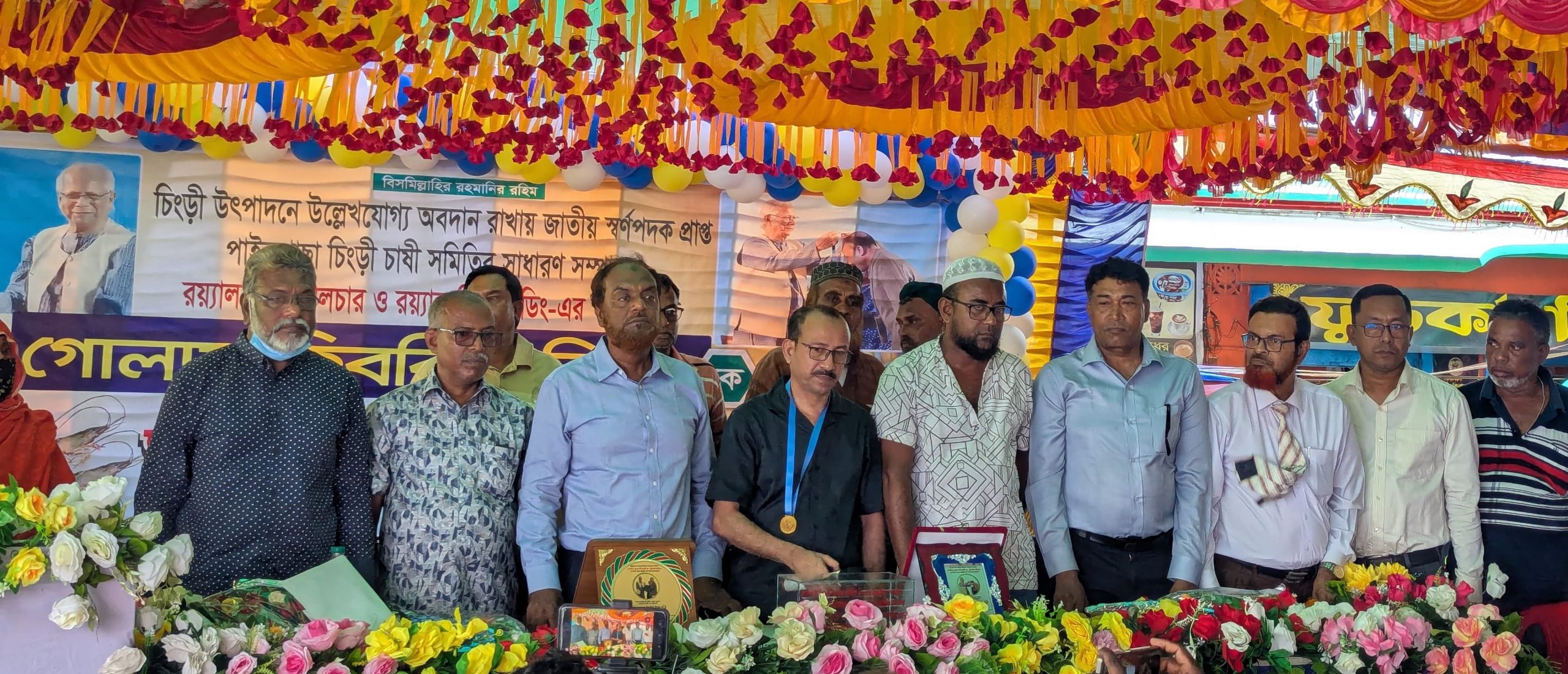 জাতীয় স্বর্ণপদকপ্রাপ্ত চিংড়ি চাষী রিপন ফুলেল শুভেচছায় সিক্ত