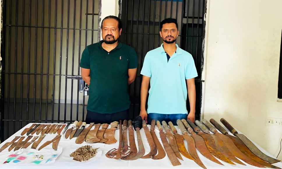 গাজীপুরের নাওজোড় এলাকা থেকে বিপুল পরিমাণ দেশীয় অস্ত্র ও গাঁজাসহ বাসন থানা বিএনপি সভাপতির ভাই তসলিম সিরাজ ও তার ছেলেকে